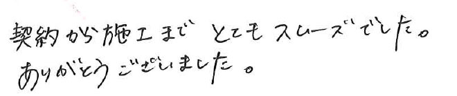 契約から施工までとてもスムーズでした。ありがとうございました。