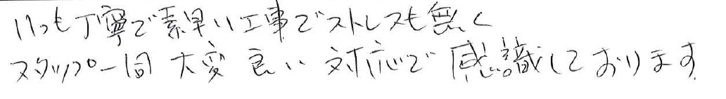 いつも丁寧で素早い工事でストレスも無くスタッフ一同大変良い対応で感謝しております。