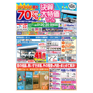 Nisshoでは、この人気カーポートを「最大70%OFF」でご案内!
